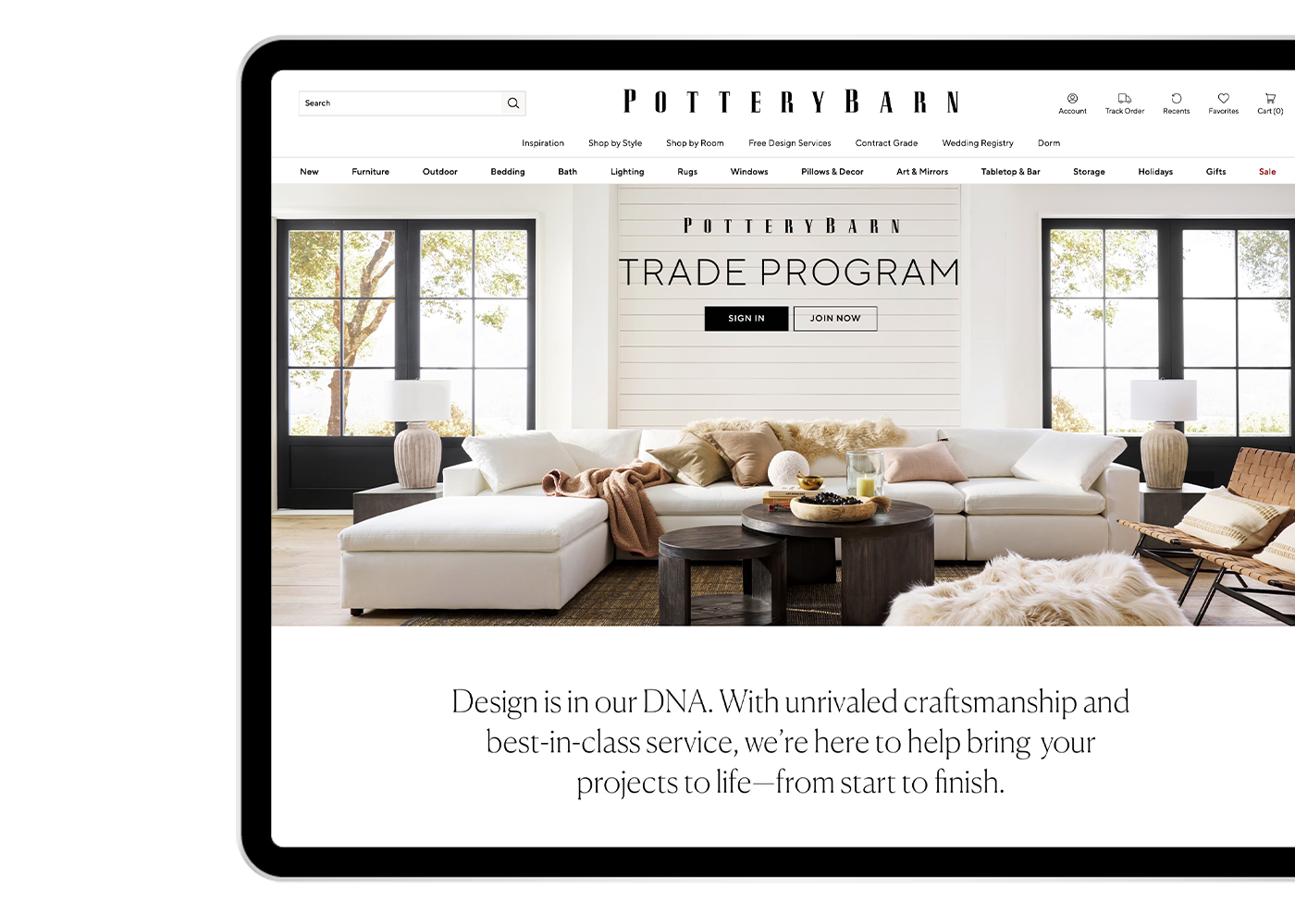 Redesign of the B2B/Trade Experience on the PotteryBarn website.